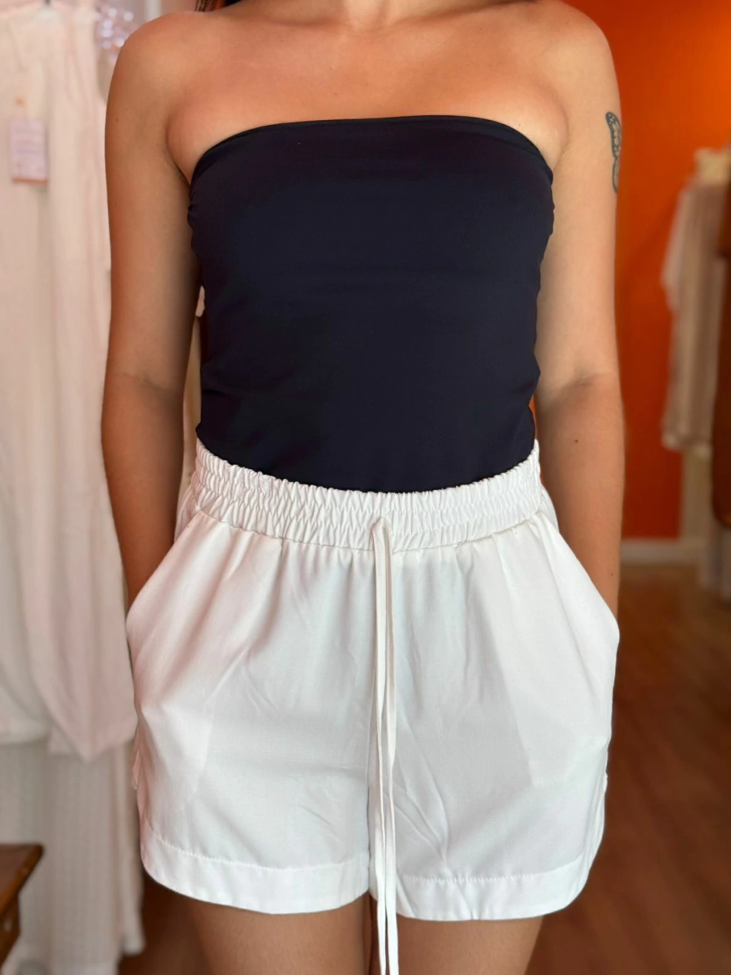 Body modelagem tomara que caia. Confeccionado em poliamida com forro duplo, ele garante que você fique super confortável e, o melhor de tudo, não fica transparente! Este modelo é ideal para quem prefere looks mais discretos, mas sem abrir mão da elegância.